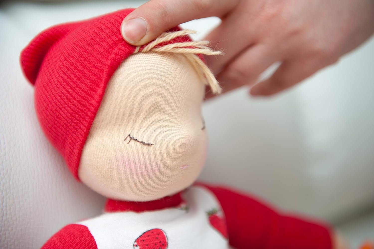 Waldorf organic red baby doll for babbies and toddlers: Handmade. 100% HANDMADE PRODUCT SPECIFICATION: -Size 28cm ( 11.02 inches) -Waldorf Doll for children from birth. (0+) -Doll has very soft material. Only organic materials so kid can take doll in the mouth . cap sewn. cap can not be removed. -doll cans to sit. 。 。 。
